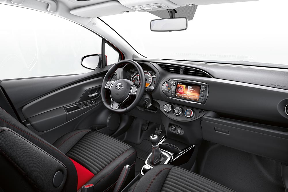Το προγενέστερο Yaris και ειδικά το ανανεωμένο μοντέλο διέθετε πολλές αναβαθμίσεις και στο εσωτερικό του. Στο μοντέλο του 2014 ανασχεδιάστηκε ένα μεγάλο μέρος του ταμπλό και είχε γίνει περισσότερη χρήση μαλακού πλαστικού στην κεντρική μετωπική επιφάνεια. Αναβαθμισμένο ήταν και το σύστημα πολυμέσων Toyota Touch 2 (στις πιο πλούσιες εκδόσεις) με τη μεγαλύτερη οθόνη αφής των 7 ιντσών, αντί 6,1 ιντσών πριν. Σήμερα τέτοιες οθόνες είναι μικρές πλέον, αφού στο νέο Yaris είναι στάνταρ οθόνη πολυμέσων 10,5 ιντσών. Στα θετικά γνωρίσματα του παλαιότερου Yaris ανήκαν οι αρκετοί χώροι για όλους τους επιβάτες, ωστόσο το πορτ μπαγκάζ των 286 λίτρων ήταν σχετικά μικρό, όπως και στο τωρινό Yaris με την ίδια ακριβώς χωρητικότητα.