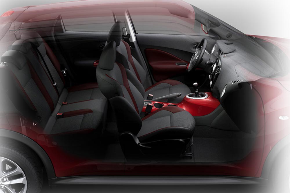 Το τελευταίο διακρίνεται ακόμα για τον ευχάριστο διάκοσμο, ενώ τα σκληρά πλαστικά ικανοποιούν τόσο με την υφή τους όσο και με το φινίρισμα και συναρμογή. Ξεχωριστό στοιχείο εξοπλισμού είναι το Nissan Dynamic Control, όπου μέσω των μπουτόν «Climate» και «D-Mode» στην κονσόλα, γίνεται ο χειρισμός του κλιματισμού και των επιλογών οδήγησης -Normal, Sport ή Eco. Οι πιο πλούσιες εκδόσεις εξοπλίζονται και με το σύστημα πολυμέσων NissanConnect με την οθόνη αφής των 5,8 ιντσών. Όσον αφορά τους χώρους, στο πίσω κάθισμα είναι σχετικά περιορισμένοι για τους λίγο πιο ψηλούς. Το πορτ μπαγκάζ έχει χωρητικότητα 354 λίτρα (έναντι 251 λτ. στο προ facelift).