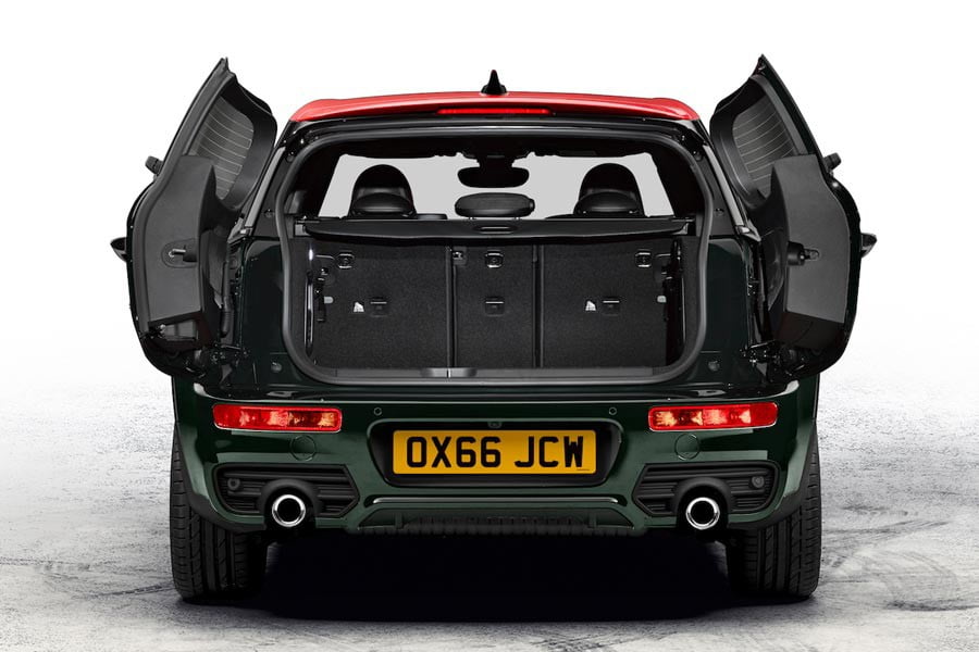 Εξωτερικά το MINI John Cooper Works Clubman μήκους 4.253 χλστ., πλάτους 1.800 χλστ., ύψους 1.441 χλστ. και με μεταξόνιο 2.670 χλστ. διακρίνεται από τους σπορ σχεδιασμού προφυλακτήρες, τους αεραγωγούς στο καπό και στα φτερά, την κόκκινη οροφή και της ίδιας απόχρωσης καθρέπτες και ρίγες στο καπό, τις δύο στρογγυλές απολήξεις της εξάτμισης και τις ζάντες αλουμινίου των 18 ιντσών με ελαστικά διαστάσεων 225/40 (προαιρετικά διατίθενται 19 ιντσών). Επίσης, υπάρχουν τα λογότυπα John Cooper Works στη μάσκα, στα εμπρός φτερά και στην πίσω πόρτα.