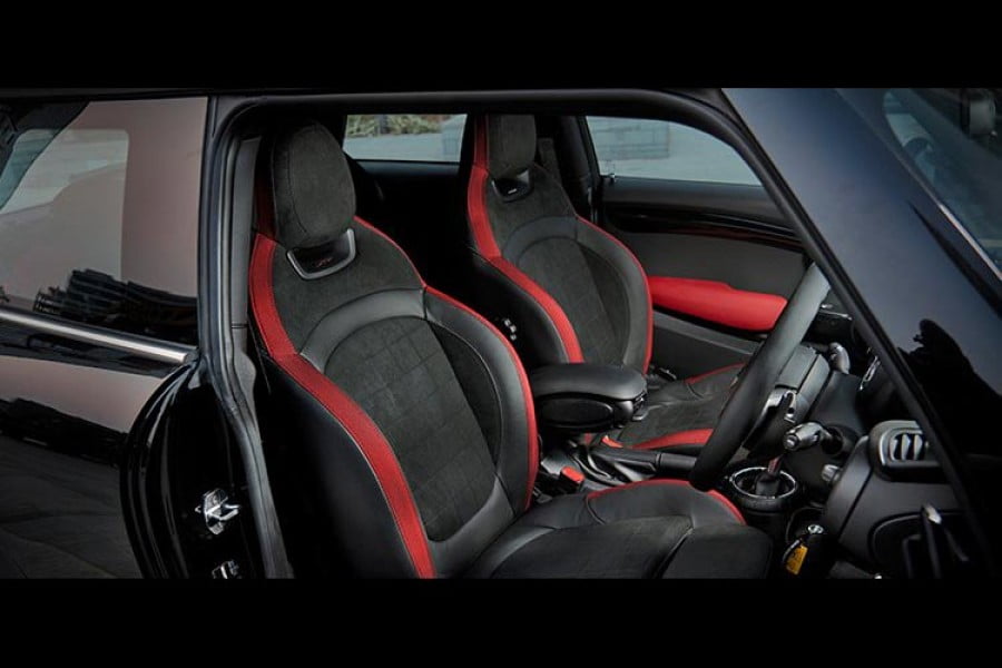 Στο εσωτερικό, η MINI έχει τονίσει περαιτέρω το σπορ χαρακτήρα του αυτοκινήτου, τοποθετώντας τα πιο σπορ καθίσματα και τιμόνι από το John Cooper Works, μαζί με νέες επενδύσεις σε μαύρο αλκαντάρα με κόκκινες ρίγες.