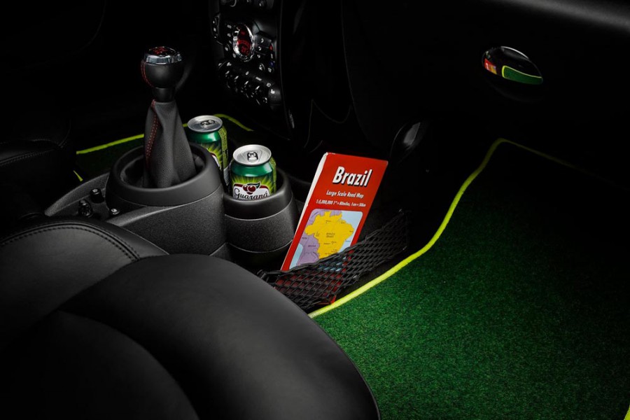 Ο εσωτερικός διάκοσμος κάθε άλλο παρά… οφσάιντ είναι, τα πατάκια σε Brasileiro Green παραπέμπουν σε συνθετικό χλοοτάπητα ενώ ο κρυφός φωτισμός MINI LED δημιουργεί ατμόσφαιρα γηπέδου. Με τέτοιο εξοπλισμό, το ‘Μεξικάνικο κύμα’ θα ξεκινήσει και από τα τέσσερα καθίσματα του MINI Paceman GoalCooper που είναι σε πλήρη ετοιμότητα για να αναβιώσει τις αμφιλεγόμενες αποφάσεις των διαιτητών και τα θεαματικά γκολ μέσω live web stream. Μία βάση γενικής χρήσης για smartphones και μία πίσω βάση για Apple iPad υπόσχονται τέλεια εικόνα για τους θεατές από τις… πίσω κερκίδες.