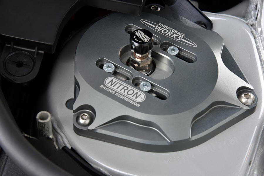 Στις αναρτήσεις του MINI John Cooper Works Challenge τοποθετήθηκαν νέα ελατήρια και ρυθμιζόμενα σε σκληρότητα και ύψος αμορτισέρ της Nitron. Αυτά είναι χειροποίητα, κατασκευασμένα από τιτάνιο και ανοδιωμένα τμήματα, ενώ χρησιμοποιούνται και στο αγωνιστικό αυτοκίνητο John Cooper Works. Για ακόμα υψηλότερη πρόσφυση στις στροφές, εξοπλίζεται και με μηχανικό διαφορικό περιορισμένης ολίσθησης της Quaife.