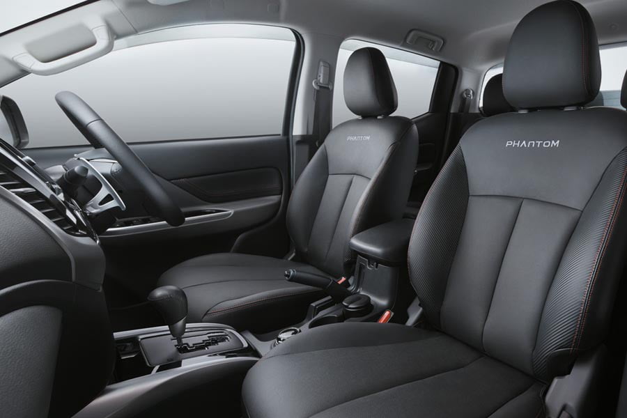Στο εσωτερικό του L200 Phantom υπάρχουν δερμάτινα μαύρα καθίσματα με κόκκινες ραφές στα πλαϊνά και το ραμμένο λογότυπο «Phantom» στην πλάτη. Ο εξοπλισμός της συγκεκριμένης έκδοσης είναι υπερπλήρης και περιλαμβάνει -μεταξύ άλλων- μπουτόν εκκίνησης για τον κινητήρα και λειτουργία χωρίς κλειδί, κάμερα οπισθοπορείας, διζωνικό κλιματισμό και ηχοσύστημα με μεγάλη οθόνη αφής.