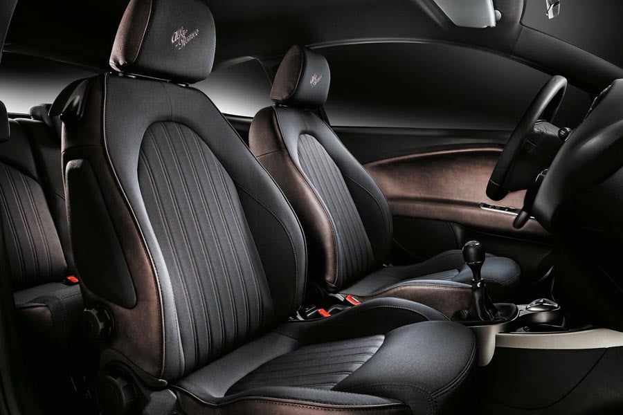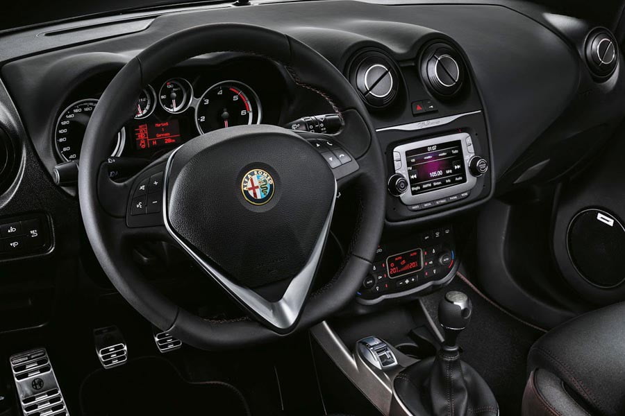 Στο εσωτερικό, το μαύρο ταμπλό από μαλακό πλαστικό συνδυάζεται με τα ολοκαίνουργια γκρι καθίσματα με καφέ δερμάτινη οικολογική επένδυση, καφέ ραφές και το λογότυπο της Alfa Romeo στα εμπρός προσκέφαλα. Δερμάτινη επένδυση με καφέ ραφές υπάρχει επίσης στο σπορ τιμόνι, τον επιλογέα των ταχυτήτων και το χειρόφρενο.