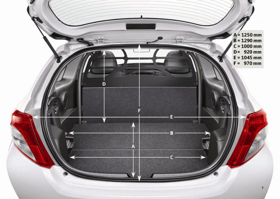 Παρά τις μικρές εξωτερικές του διαστάσεις (μήκος 3,8 μ.), το YarisVan εξασφαλίζει αποθηκευτικό χώρο 1.100 λίτρων με μεγάλο άνοιγμα της πίσω πόρτας για εύκολη φόρτωση και εκφόρτωση. Επιπλέον εξοπλίζεται με ειδικό μεταλλικό διαχωριστικό καμπίνας, εξασφαλίζοντας τη μέγιστη δυνατή ασφάλεια για τους επιβαίνοντες, δίχως να περιορίζει σημαντικά την ορατότητα προς τα πίσω, αλλά και με ειδική αντιολισθητική μοκέτα στον χώρο φόρτωσης.
