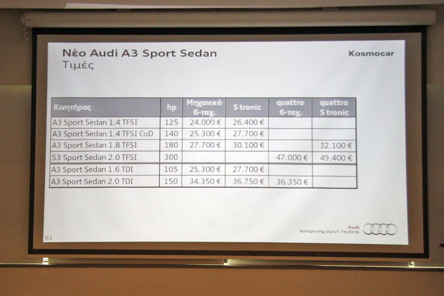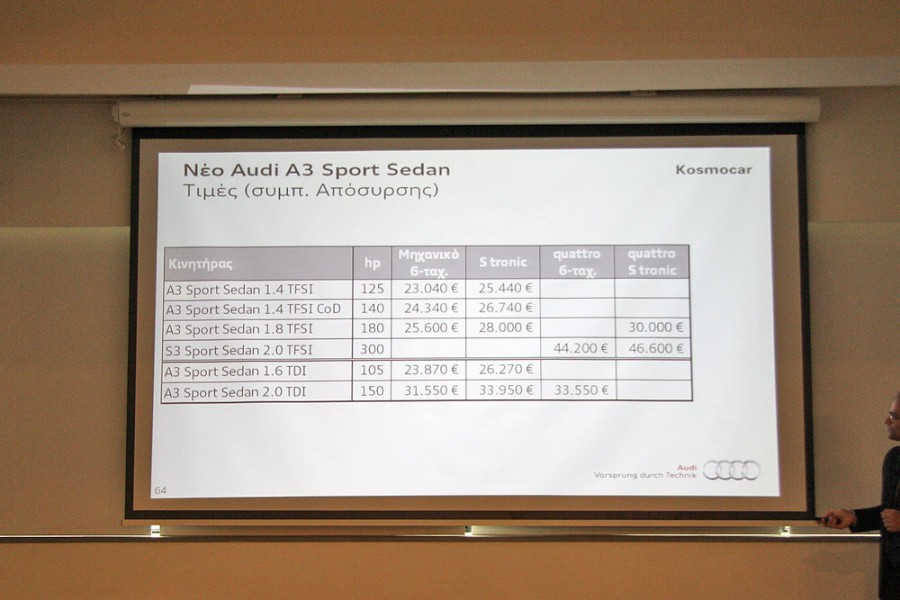 - Ανακοινώθηκαν οι τιμές του νέου Audi A3 Sport Sedan