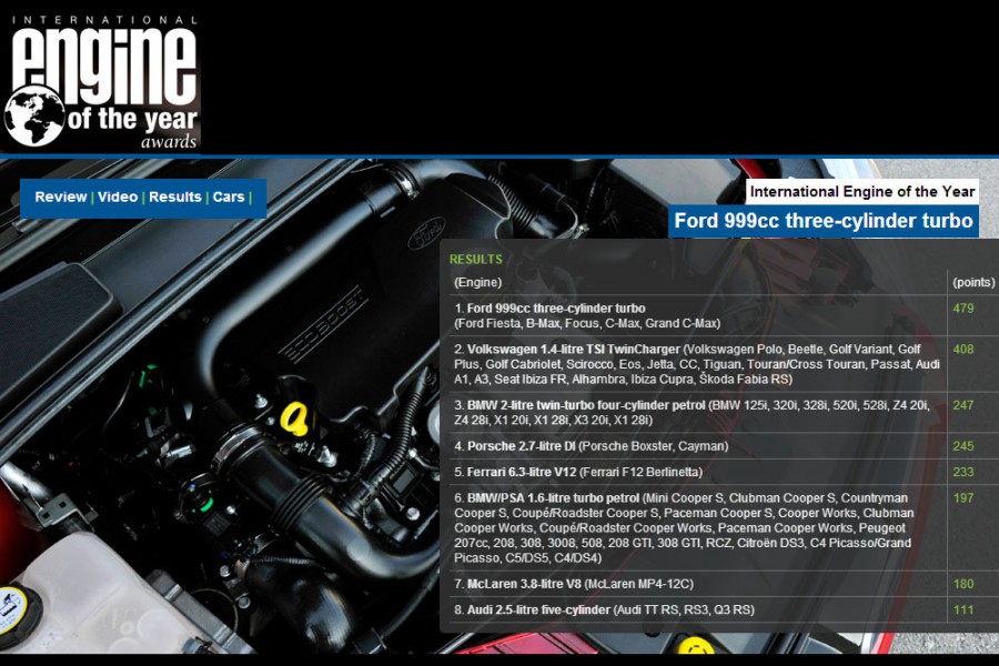 Η Ford με τον 1.0 EcoBoost κινητήρα κέρδισε για δεύτερη συνεχόμενη χρονιά τον τίτλο του «Παγκόσμιου Κινητήρα της Xρονιάς 2013», ενώ πολύ ενδιαφέρον παρουσιάζουν τα αποτελέσματα και σε όλες τις υπόλοιπες 11 ακόμα κατηγορίες.