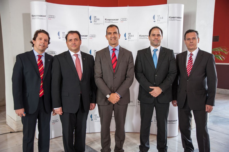 Στην τελετή που πραγματοποιήθηκε στο Ζάππειο, παραμονή της ανάληψης της Προεδρίας, η Kosmocar A.E.- Audi παρέδωσε επίσημα στο υπουργείο Εξωτερικών 45 συμβατικά αυτοκίνητα Audi Α6 και Α8 τριών όγκων (τύπου λιμουζίνας) αλλά και κάποιες θωρακισμένες εκδόσεις των μοντέλων. Επιπλέον ένας υποστηρικτικός στόλος 24 οχημάτων Audi μεταξύ άλλων: Audi A1, Audi A3, Audi A3 Sportback, Audi A4 & A5 Sportback παραχωρήθηκαν στο Υπουργείο Εξωτερικών προκειμένου να καλύψει όλες τις ανάγκες της Ελληνικής Προεδρίας μέχρι τον Ιούλιο του 2014.