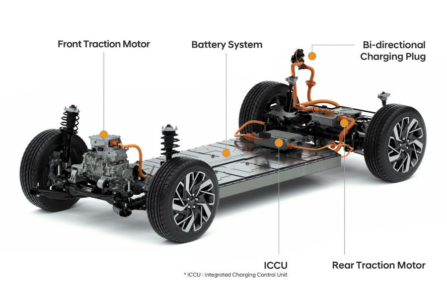Η μπαταρία είναι τοποθετημένη μεταξύ του εμπρός και του πίσω άξονα και είναι η πιο πυκνή μονάδα που έχει δημιουργήσει το Hyundai Motor Group. Στη στάνταρ διαμόρφωση, η πλατφόρμα E-GMP προσφέρει δυνατότητα φόρτισης 800V και επιτρέπει επίσης φόρτιση 400V χωρίς την ανάγκη για πρόσθετα εξαρτήματα ή αντάπτορες. Υποστηρίζει επίσης ταχύτητες φόρτισης έως 350 kWh και προσφέρει μέγιστη αυτονομία 500 χιλιομέτρων, πάντα σε κύκλο WLTP. Από το 0 στο 80% δε, μπορεί να φορτίσει μέσα σε μόλις 18 λεπτά.
