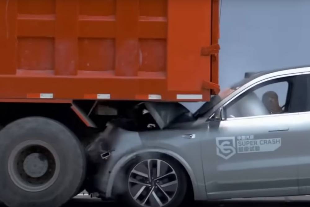 Η ονομασία του είναι ακριβώς αυτή: Super Crash Test. Μάς έρχεται από την Κίνα, όπου κόντρα στα μέχρι πριν λίγων ετών αναιμικά στάνταρ ασφαλείας, σήμερα δίνουν προσοχή και στην παραμικρή λεπτομέρεια. Οι Κινέζοι εξετάζουν την παθητική ασφάλεια των νέων μοντέλων σε μια ακραία πιθανότητα ατυχήματος, που περιλαμβάνει τη σύνθλιψη του αυτοκινήτου ανάμεσα σε δυο φορτηγά! Το υπό εξέταση όχημα βρίσκεται σταματημένο, πίσω από ένα επίσης ακίνητο και ανατρεπόμενο φορτηγό 30 τόνων. Η επιλογή του συγκεκριμένου τύπου δεν γίνεται τυχαία, καθώς το κάτω άκρο της καρότσας «σημαδεύει» το παρμπρίζ του αυτοκινήτου σε περίπτωση οπίσθιας σύγκρουσης, πολλαπλασιάζοντας το βαθμό επικινδυνότητας.