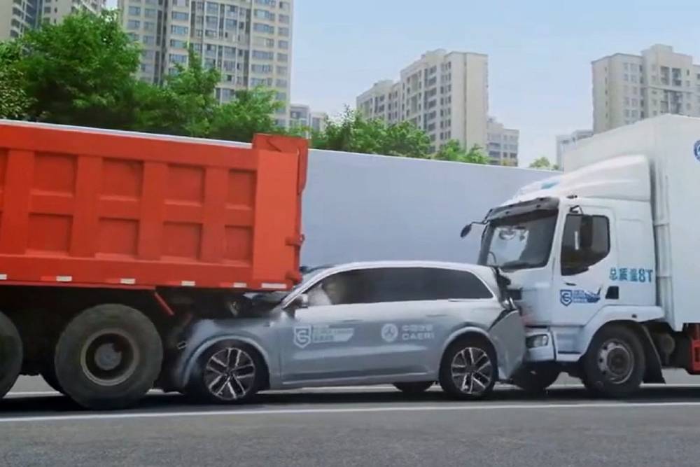 Η ονομασία του είναι ακριβώς αυτή: Super Crash Test. Μάς έρχεται από την Κίνα, όπου κόντρα στα μέχρι πριν λίγων ετών αναιμικά στάνταρ ασφαλείας, σήμερα δίνουν προσοχή και στην παραμικρή λεπτομέρεια. Οι Κινέζοι εξετάζουν την παθητική ασφάλεια των νέων μοντέλων σε μια ακραία πιθανότητα ατυχήματος, που περιλαμβάνει τη σύνθλιψη του αυτοκινήτου ανάμεσα σε δυο φορτηγά! Το υπό εξέταση όχημα βρίσκεται σταματημένο, πίσω από ένα επίσης ακίνητο και ανατρεπόμενο φορτηγό 30 τόνων. Η επιλογή του συγκεκριμένου τύπου δεν γίνεται τυχαία, καθώς το κάτω άκρο της καρότσας «σημαδεύει» το παρμπρίζ του αυτοκινήτου σε περίπτωση οπίσθιας σύγκρουσης, πολλαπλασιάζοντας το βαθμό επικινδυνότητας.
