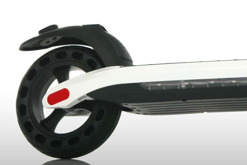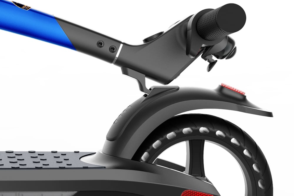 Ο brushless ηλεκτροκινητήρας των 350W, έχει πολύ αθόρυβη λειτουργία και απαιτεί ελάχιστη συντήρησης αφού δεν υπάρχουν «καρβουνάκια» που να φθείρονται και να χρειάζεται να αλλαχθούν. Οι τροχοί των 8 ιντσών διαθέτουν συμπαγή ελαστικά, γεγονός θετικό, καθώς εξαλείφεται ο κίνδυνος τρυπήματος αλλά αρνητικό στο θέμα της άνεσης. Σε αυτό βέβαια βοηθάει η ύπαρξη μπροστινής ανάρτησης που απορροφά εν μέρη τους κραδασμούς που προκαλούνται από τις ανωμαλίες του οδοστρώματος. Από πλευράς ασφάλειας, το ηλεκτρικό σκούτερ είναι εξοπλισμένο με διπλό φρένο, εμπρός και πίσω, και φώτα led κάτω από το deck που βοηθούν την οδήγηση και την ορατότητα τη νύχτα.