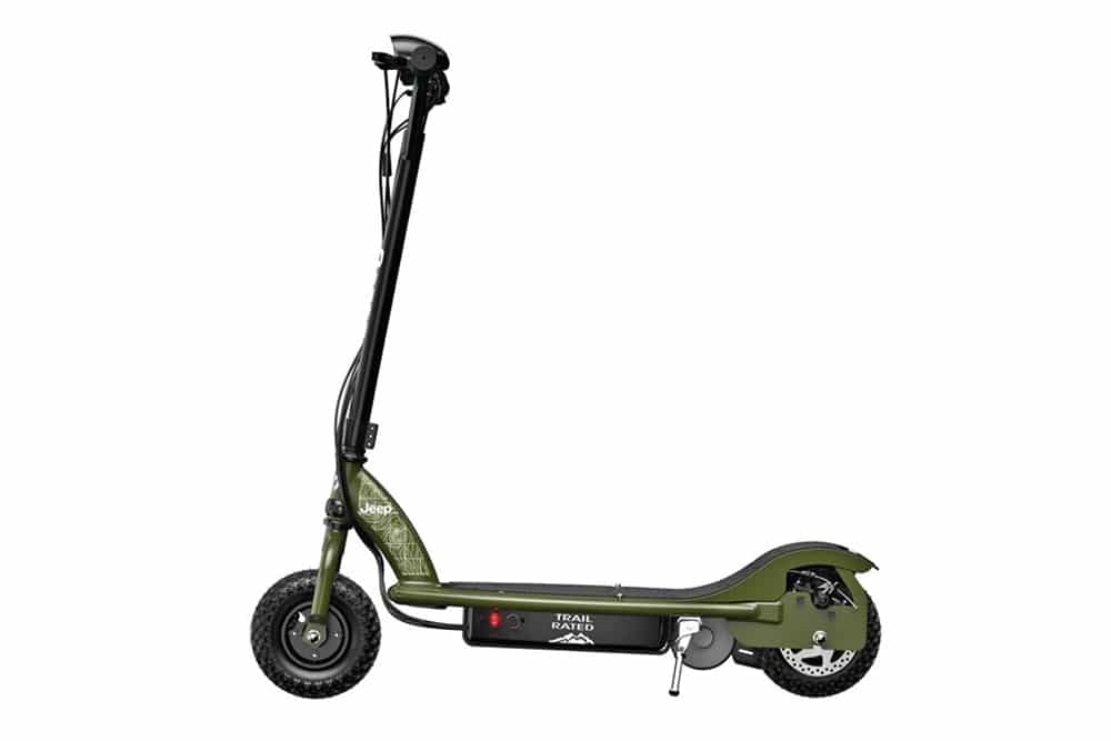Η τελική του ταχύτητα είναι 19 χλμ./ώρα και το μέγιστο βάρος αναβάτη που «σηκώνει» είναι μόλις 70 κιλά, κάτι που θα μπορούσε να είναι ένα πρόβλημα για πολλούς ενήλικες. Η μπαταρία των 24V είναι επίσης μικρή σε χωρητικότητα, και προσφέρει αυτονομία 40 λεπτών χρήσης, με μία φόρτιση. Το βάρος είναι αυξημένο λόγω της στιβαρής κατασκευής, όντας 20 κιλά περίπου. Εμφανισιακά ταιριάζει απόλυτα με τα χρώματα και το χαρακτήρα των 4κίνητων οχημάτων της Jeep. Λαδί Army Green, αναγνωριστικά αυτοκόλλητα «Trail Rated», λογότυπα Jeep, διπλά LED φώτα στο εμπρός μέρος και δισκόφρενο, συνθέτουν τον απόλυτα ταιριαστό συνοδοιπόρο ενός κατόχου Jeep για τις εξερευνήσεις στη φύση. Εκεί που σταματάει το αυτοκίνητο συνεχίζει το πατίνι…