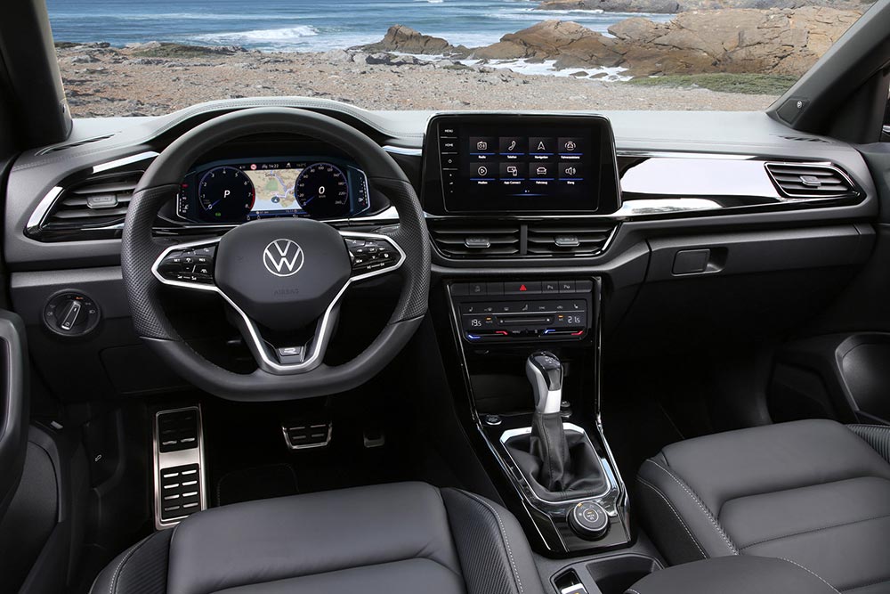 Στο θάλαμο των επιβατών του T-Roc, τη διαφορά κάνει αμέσως το επανασχεδιασμένο ταμπλό με τη μαλακή επένδυση, ο ψηφιακός πίνακας οργάνων Digital Cockpit και η εκσυγχρονισμένη οθόνη του συστήματος πολυμέσων, που βρίσκεται τοποθετημένη στο ταμπλό σε στυλ tablet. Το μέγεθος των οθονών Infotainment ξεκινά από τις 8 ίντσες και φτάνει έως τις 9,2 ιντσών στο Infotainment Discover Pro. Ο έλεγχος του αυτόματου κλιματιστικού γίνεται πλέον ψηφιακά, ενώ άλλες λειτουργίες, καθώς και η θέρμανση καθισμάτων, διαθέτουν χειριστήρια αφής. Στα ατού παραμένουν οι άνετοι χώροι για όλους τους επιβάτες και το μεγάλο επεκτάσιμο πορτ μπαγκάζ από 445 λτ. έως και 1.290 λτ.