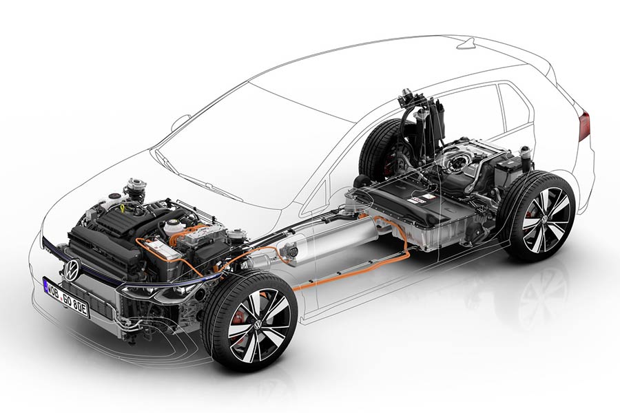 Golf GTE 1.4 eHybrid 245 PS DSG και Golf 1.4 eHybrid 204 PS DSG, για πρώτη φορά δύο plug-in υβριδικές εκδόσεις που εξηλεκτρίζουν τη γκάμα του Golf. Και οι δύο εκδόσεις συνδυάζουν τον τετρακύλινδρο 1.4 TSI κινητήρα βενζίνης. με ισχύ 150 PS και ροπή 250 Nm (1.550-3.500 σ.α.λ.), με ηλεκτροκινητήρα. Στο eHybrid 204 PS, ο ηλεκτροκινητήρας αποδίδει 54 PS –συνδυασμένη ισχύς 204 PS– ενώ στην έκδοση GTE είναι πιο ισχυρός, αποδίδοντας 95 PS, με τη συνδυασμένη ισχύ να είναι 245 PS, αντίστοιχη του Golf GTI. Η επιτάχυνση στο 0-100 χλμ./ώρα είναι 7,4 δευτερόλεπτα με τελική ταχύτητα 220 χλμ./ώρα για το eHybrid 204 PS και 6,7 δευτερόλεπτα με τελική ταχύτητα 225 χλμ./ώρα για το GTE. Και οι δύο εκδόσεις συνδυάζονται με αυτόματο κιβώτιο ταχυτήτων διπλού συμπλέκτη DSG, έξι σχέσεων.