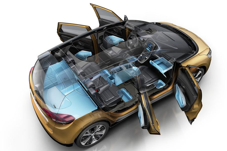 Το Scenic διαθέτει το σύστημα αναδίπλωσης των καθισμάτων με μια κίνηση (Renault One-Touch), το οποίο επιτρέπει την εύκολη και γρήγορη διαμόρφωση ενός εντελώς επίπεδου χώρου για τις αποσκευές. Μάλιστα, είναι το μοναδικό αυτοκίνητο στην κατηγορία του που η συγκεκριμένη λειτουργία μπορεί να ενεργοποιηθεί από δύο διαφορετικά σημεία: το πίσω μέρος του χώρου αποσκευών και το σύστημα infotainment, R-LINK 2.