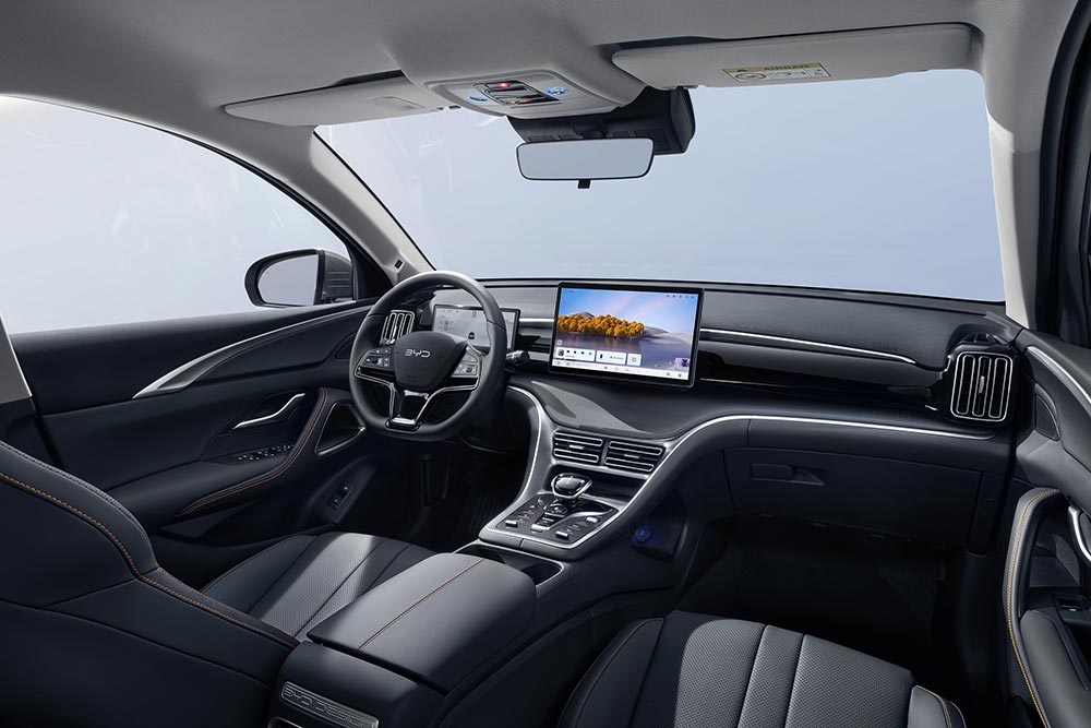 Το Sealion 5 DM-i συνδυάζει μια δυναμική, γεμάτη αυτοπεποίθηση παρουσία με έξυπνη εκμετάλλευση χώρου. Έχει μήκος 4.738 χλστ., πλάτος 1.860 χλστ. και ύψος 1.710 χλστ., ενώ το σχετικά μεγάλο μεταξόνιο των 2.712 χλστ. προσφέρει εξαιρετική άνεση στα πίσω καθίσματα. Το ταμπλό ενσωματώνει ψηφιακό πίνακα οργάνων 8,8 ιντσών, καθώς και οθόνη αφής υψηλής ανάλυσης 12,8 ιντσών. Το σύστημα υποστηρίζει φωνητικές εντολές «Hi BYD», ενσωματωμένη συνδεσιμότητα με smartphone Apple και Android, και προσφέρει χρήσιμες συντομεύσεις για βασικές λειτουργίες σε μια προσαρμόσιμη διεπαφή. Οι επιβάτες μπορούν εύκολα να φορτίζουν τις συσκευές τους: υπάρχουν δύο θύρες USB-Type-C (μία 60 W, μία 18 W) εμπρός και πίσω. Η κορυφαία έκδοση Design διαθέτει επίσης βάση ασύρματης φόρτισης 15 W για smartphone στην μπροστινή κονσόλα. Ο θάλαμος των επιβατών προσφέρει πολύ χώρο για το κεφάλι και τα πόδια των επιβατών, καθιστώντας το Sealion 5 DM-i ένα πενταθέσιο και άνετο όχημα με ταξιδιάρικο χαρακτήρα. Ο χώρος αποσκευών έχει χωρητικότητα 463 λίτρων και αυξάνεται στα 1.410 λίτρα με τα πίσω καθίσματα αναδιπλωμένα. Όλες οι εκδόσεις του διαθέτουν στάνταρ λειτουργία V2L, που επιτρέπει την τροφοδοσία εξωτερικών συσκευών (π.χ. καφετιέρα, φορητό ψυγείο, laptop, φωτιστικό) με ισχύ έως 3,3 kW.