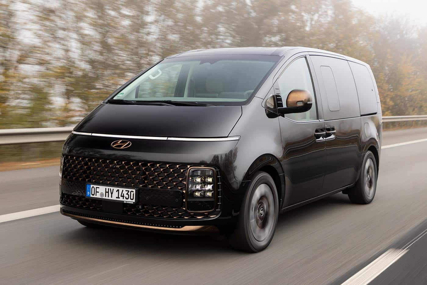 Το πληθωρικό, ενός όγκου MPV Hyundai Staria με το εντυπωσιακό εμπρός μέρος και τη LED λωρίδα από άκρη σε άκρη έχει μήκος 5.255 χλστ., πλάτος 1.997 χλστ., ύψος 1.990 χλστ. και μεταξόνιο 3.275 χλστ. Την κίνησή του αμαξώματος των 2,2 τόνων αναλαμβάνει ένα full hybrid σύνολο συνδυαστικής ισχύος 225 ίππων στις 5.500 σ.α.λ. και 367 Nm ροπής στις 1.000-4.000 σ.α.λ. Αποτελείται από τον 1.6 T-GDI βενζινοκινητήρα των 160 PS/5.500 σ.α.λ. και 265 Nm/1.500-3.500 σ.α.λ. και το ηλεκτρικό μοτέρ των 73 PS και 264 Nm. Η μετάδοση γίνεται με αυτόματο κιβώτιο 6 ταχυτήτων με Shift by wire επιλογέα και με paddles στο τιμόνι για χειροκίνητες αλλαγές. Το Staria επιταχύνει στο 0-100 χλμ./ώρα σε 10,2 δλ. και η τελική ταχύτητα φτάνει τα 176 χλμ./ώρα. Η Hyundai ανακοινώνει μεικτή κατανάλωση 7,6 λτ./100 χλμ. και εκπομπές CO2 172 γρ./χλμ.