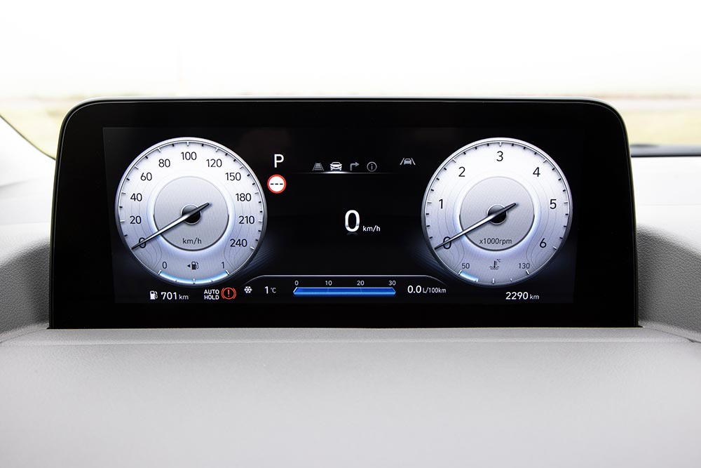 Στον εξοπλισμό του 9θέσιου ανήκουν 6 αερόσακοι, τα συστήματα αυτόνομης πέδησης και διατήρησης λωρίδας, ψηφιακός πίνακας οργάνων 12,3 ιντσών, οθόνη αφής 10,25 ιντσών, πλοήγηση, Hyundai Bluelink ασύρματη φόρτιση κινητού, 8 θύρες USB, τριζωνικός κλιματισμός, κάμερα οπισθοπορείας, αισθητήρες παρκαρίσματος εμπρός και πίσω, ζάντες αλουμινίου 17 ιντσών κ.λπ. To πιο ακριβό 7θέσιο ξεχωρίζει εξωτερικά από τα διακοσμητικά σε χρώμα σκούρου μπρούτζου και τις 18άρες ζάντες. Στο εσωτερικό διαθέτει επιπλέον διπλή ανοιγόμενη και ανακλινόμενη πανοραμική ηλιοροφή, θερμαινόμενα και αεριζόμενα καθίσματα εμπρός και 2ης σειράς, θερμαινόμενο τιμόνι, δερμάτινο σαλόνι, αυτόματο άνοιγμα πλαϊνών θυρών, suede επένδυση σε οροφή, σκιάδια και κολώνες.