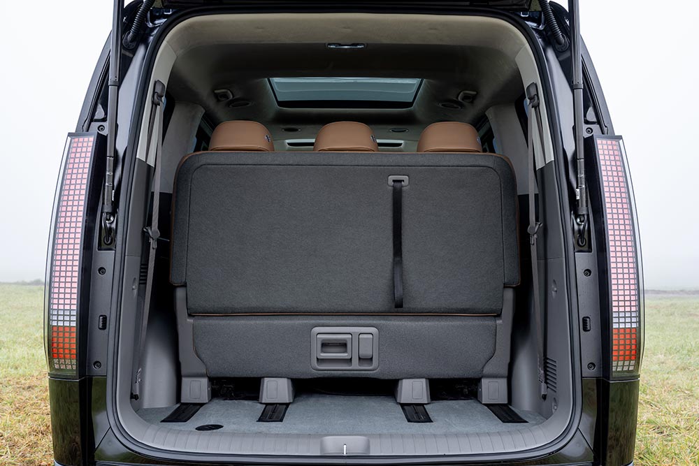 Όσον αφορά τη διάταξη των καθισμάτων, στο 9θέσιο είναι 3+3+3 και στο 7θεσιο είναι 2+2+3. Η premium έκδοση 7 θέσεων έχει σχεδιαστεί με γνώμονα την πολυτέλεια και την πρακτικότητα. Τόσο η δεύτερη όσο και η τρίτη σειρά καθισμάτων σύρονται προς τα εμπρός κατά 300 χιλιοστά, επιτρέποντας την ευέλικτη χρήση του εσωτερικού χώρου. Τα καθίσματα χαλάρωσης premium δεύτερης σειράς προσφέρουν εξαιρετική άνεση, με ηλεκτρικά ελεγχόμενα μαξιλάρια καθισμάτων, πλάτες καθισμάτων και στηρίγματα ποδιών. Το 9θέσιο είναι σχεδιασμένο τόσο για άνεση επιβατών όσο και για ευελιξία φορτίου, προσφέροντας 1.303 λίτρα χώρου φόρτωσης. Τα καθίσματα δεύτερης και τρίτης σειράς σύρονται κατά 20 χιλιοστά και 400 χιλιοστά, αντίστοιχα. Παράλληλα την πρακτικότητα ενισχύουν οι πάρα πολλοί αποθηκευτικοί χώροι για όλους τους φιλοξενούμενους.