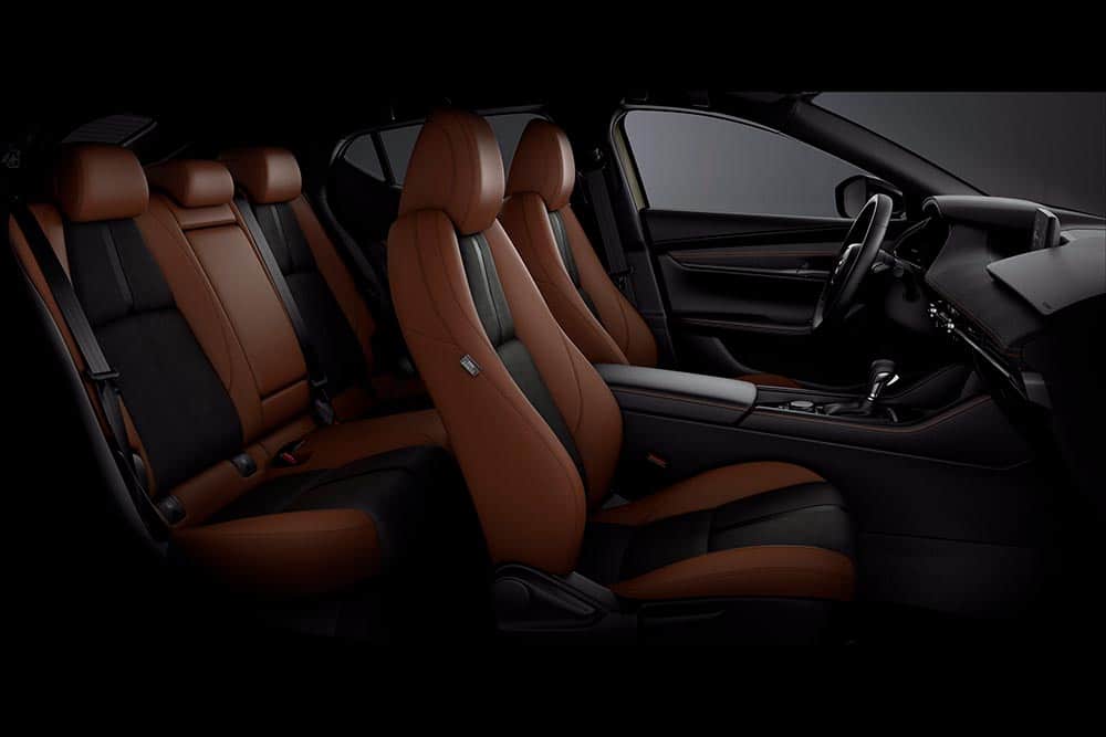 Το Zircon Sand Metallic επιλέχθηκε ως το βασικό χρώμα για την παλέτα χρωμάτων της Nagisa λόγω των μοναδικών του χαρακτηριστικών. Από μακριά φαίνεται σαν μια στερεά απόχρωση, προσφέροντας ένα κλασσικό sport ύφος. Ωστόσο, μια πιο εστιασμένη ματιά αναδεικνύει τα μεταλλικά χαρακτηριστικά του, ενισχύοντας την κομψή εμφάνιση του οχήματος. Οι αντανακλάσεις και οι σκιές που δημιουργούνται από το μεταλλικό φινίρισμα τονίζουν τη δομή του σώματος, ενώ η ορυκτή σκληρότητα του χρώματος, όπως δηλώνει και το όνομά του, προσδίδει ένα μοναδικό φινίρισμα. Επιπλέον, η έκδοση Nagisa διαθέτει μαύρους τροχούς και καθρέπτες, καθώς και μαύρη υπογραφή στον πτερύγιο, μια πρωτοποριακή επιλογή για το CX-30, προσφέροντας μια λεία και κομψή όψη που συνδυάζει το πιο sport με το εκλεπτυσμένο ύφος. Λεπτομέρειες, όπως οι ραφές – και αυτές σε terracotta χρωματισμό – στο ταμπλό, ολοκληρώνουν τον μοναδικό σχεδιασμό του εσωτερικού.