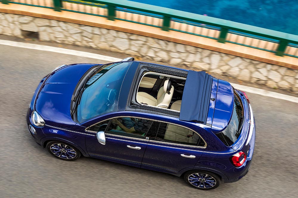Η νέα σειρά του 500Χ, του SUV της θρυλικής σειράς 500, αποκτά την έκδοση Dolcevita που χαρακτηρίζεται από την ηλεκτρικά ανοιγόμενη υφασμάτινη οροφή και ενισχύει ακόμα περισσότερο τον περιπετειώδη χαρακτήρα του μοντέλου. Μέσα σε μόλις 15 δευτερόλεπτα -ακόμα και όταν το όχημα βρίσκεται εν κινήσει με ταχύτητες έως και 100χλμ./ώρα- μέσω ενός διακόπτη, η κομψή υφασμάτινη οροφή του 500X Dolcevita ανοίγει και φέρνει την αίσθηση ενός cabrio αυτοκινήτου στους επιβάτες του δυναμικού SUV. Το ξεχωριστό στιλ και η επαφή με τη φύση συνδυάζονται ιδανικά με την πρακτικότητα, αφού η πανοραμική ανοιγόμενη οροφή είναι σχεδιασμένη έτσι ώστε να μην περιορίζει στο ελάχιστο το χώρο αποσκευών, αλλά και την πρόσβαση σε αυτόν.