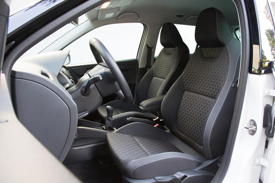 Στο εσωτερικό, τα επιπλέον στοιχεία εξοπλισμού που διαφοροποιούν αυτή την ξεχωριστή Fabia, είναι το 3άκτινο δερμάτινο πολυλειτουργικό τιμόνι Supersport και τα σπορ καθίσματα εμπρός.