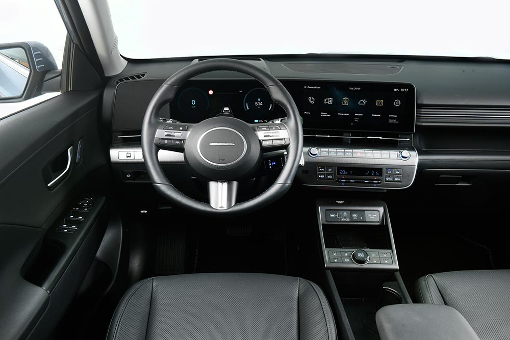 Σχετικά με τον πλούσιο στάνταρ εξοπλισμό του νέου Kona Electric, στην έκδοση Distinctive ανήκουν μεταξύ άλλων τα εξής: 7 αερόσακοι • Αυτόματο φρενάρισμα • Διατήρηση λωρίδας • Οθόνη οδηγού 12,4 ιντσών • Οθόνη πολυμέσων 12,3 ιντσών • Πλήρη φώτα LED • Διζωνικός κλιματισμός • Αυτόματη λειτουργία φώτων και υαλοκαθαριστήρων • Αισθητήρες παρκαρίσματος εμπρός/πίσω • Κάμερα οπισθοπορείας • Ζάντες αλουμινίου 17 ιντσών. Στο Limited προστίθενται επενδύσεις από δέρμα και ύφασμα, 19άρες ζάντες, ασύρματη φόρτιση κινητού και σκούρα πίσω κρύσταλλα.