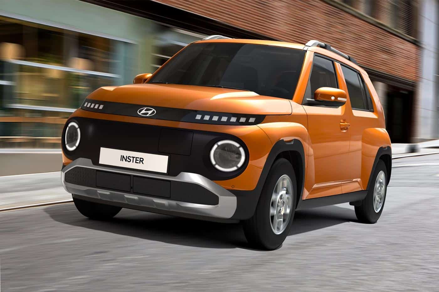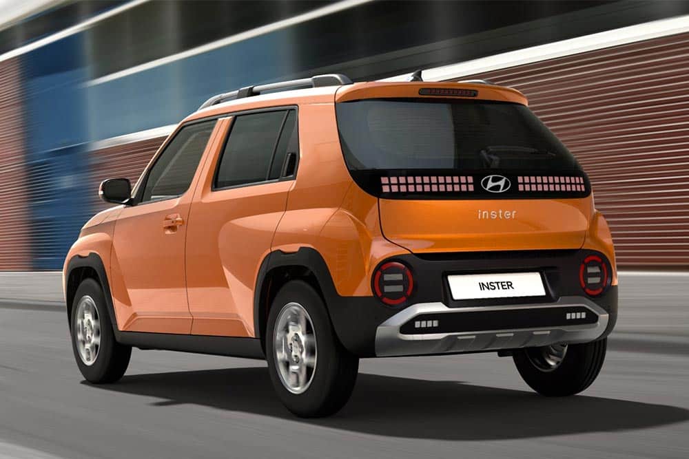 Η τολμηρή σχεδίαση του Inster συνδυάζει μια φουτουριστική, καινοτόμο σχεδίαση με ένα ευρύχωρο εσωτερικό σε ένα μικρό αμάξωμα. Η προσωπικότητα του INSTER αναδεικνύεται με την υπογραφή των φώτων ημέρας LED, τα φλας με τα γραφικά pixels, το πίσω φως και τους προφυλακτήρες. Οι πελάτες μπορούν να διαφοροποιήσουν περαιτέρω την εμφάνιση του αυτοκινήτου, επιλέγοντας μέσα από ατσάλινες ζάντες 15 ιντσών, ζάντες αλουμινίου 15 ιντσών ή ζάντες αλουμινίου 17 ιντσών ανάλογα την έκδοση. Τα χαρακτηριστικά φώτα ημέρας LED – φλας και τα πίσω φώτα με γραφικά pixel, τα φουσκωμένα του φτερά και οι δυναμικοί προφυλακτήρες με τις ποδιές συνθέτουν ένα ξεχωριστό παρουσιαστικό. Από πλευράς διαστάσεων είναι αισθητά μεγαλύτερο από το Hyundai i10, όμως με μήκος 3.825 χλστ. (3.670 χλστ. το i10), πλάτος 1.610 χλστ., ύψος 1.575 χλστ. και μεταξόνιο 2.580 χλστ. παραμένει κόμπακτ.