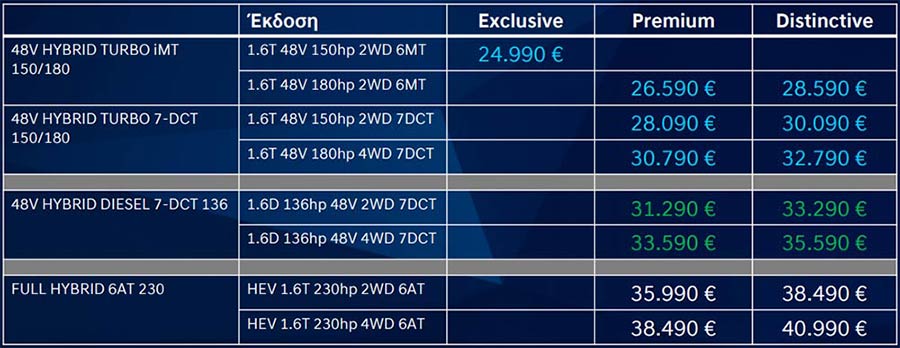 Όσον αφορά την 48V υβριδική τεχνολογία, οι πελάτες μπορούν να επιλέξουν από τρεις διαφορετικές εκδόσεις: