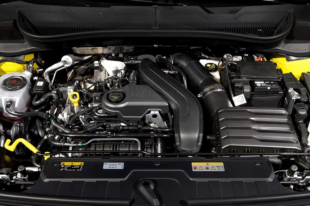 Όσον αφορά τους κινητήρες ο βασικός 1.000άρης TSI αποδίδει 95 ίππους και 175 Nm ροπής, προσφέρει επιτάχυνση στα 0-100 χλμ./ώρα σε 11,2 δλ. και μέγιστη ταχύτητα 180 χλμ./ώρα, με μεικτή κατανάλωση 5,7 λτ./100 χλμ. και εκπομπές CO2 128 γρ./χλμ. Ο πιο δυνατός 1.0 TSI έχει ισχύ 116 PS και 200 Nm, 0-100 χλμ./ώρα σε 10 δλ., τελική ταχύτητα 193 χλμ./ώρα (10,3 δλ. και 192 χλμ./ώρα με το DSG), μεικτή κατανάλωση 5,6 λτ./100 χλμ. και CO2 128 γρ./χλμ. (5,8 λτ./100 χλμ. και 132 γρ./χλμ. με το DSG). Στην κορυφή τοποθετείται ο 1.5 TSI αποκλειστικά με DSG, ισχύ 150 PS και 250 Nm, 0-100 χλμ./ώρα σε 8,4 δλ., τελική 200 χλμ./ώρα, μεικτή κατανάλωση 7,6 λτ./100 χλμ. και CO2 135 γρ./χλμ.