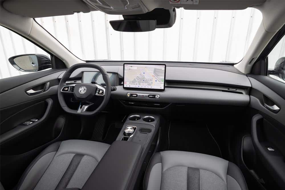 Το νέο MGS5 EV με μήκος 4.476 χλστ. (4.430 χλστ. το ZS Max), πλάτος 1.849 χλστ., ύψος 1.621 χλστ. και μακρύ μεταξόνιο 2.730 χλστ. παρουσιάζεται κομψό και καλλίγραμμο εξωτερικά υιοθετώντας σχεδιαστικά πρότυπα από το διθέσιο roadster MG Cyberster. Μοντέρνο είναι και το εσωτερικό του, όπου κυριαρχούν οι οθόνες των 10,25 ιντσών του πλήρως ψηφιακού πίνακα οργάνων και των 12,8 ιντσών του infotainment. Ο μινιμάλ σχεδιασμός του ταμπλό με λίγα φυσικά χειριστήρια κάτω από την οθόνη πολυμέσων, το σπορτίφ τριάκτινο flat bottom τιμόνι, ο στρογγυλός επιλογέας των ταχυτήτων και η «αιωρούμενη» κεντρική κονσόλα, αποτελούν ορισμένα ακόμα ξεχωριστά γνωρίσματα. Το MGS5 EV φιλοξενεί με άνεση όλους τους επιβάτες μαζί με τις αποσκευές τους στο πορτ μπαγκάζ με τη χωρητικότητα των 453 λίτρων (έως τα 1.441 λτ. με τα πίσω καθίσματα αναδιπλωμένα).