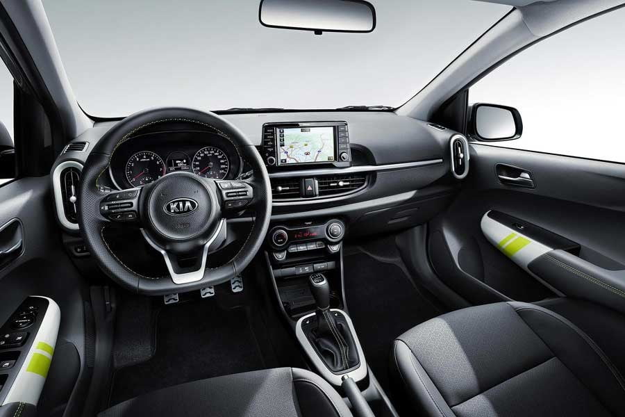 Ο στάνταρντ εξοπλισμός της έκδοσης X-Line του Kia Picanto περιλαμβάνει μεταξύ άλλων, ηλεκτρική ηλιοροφή, ηλεκτρικούς αναδιπλούμενους καθρέπτες με LED φλας, Sport προφυλακτήρες και ποδιές μεταλλικής εμφάνισης εμπρός και πίσω, πλευρικά μαρσπιέ και sport πλαϊνά προστατευτικά, διπλή εξάτμιση, sport δερμάτινο σαλόνι με διχρωμία γκρί/lime (πράσινο ανοιχτό), sport πεντάλ αλουμινίου, πίσω αισθητήρες παρκαρίσματος και νέο σετάρισμα στην ανάρτηση.