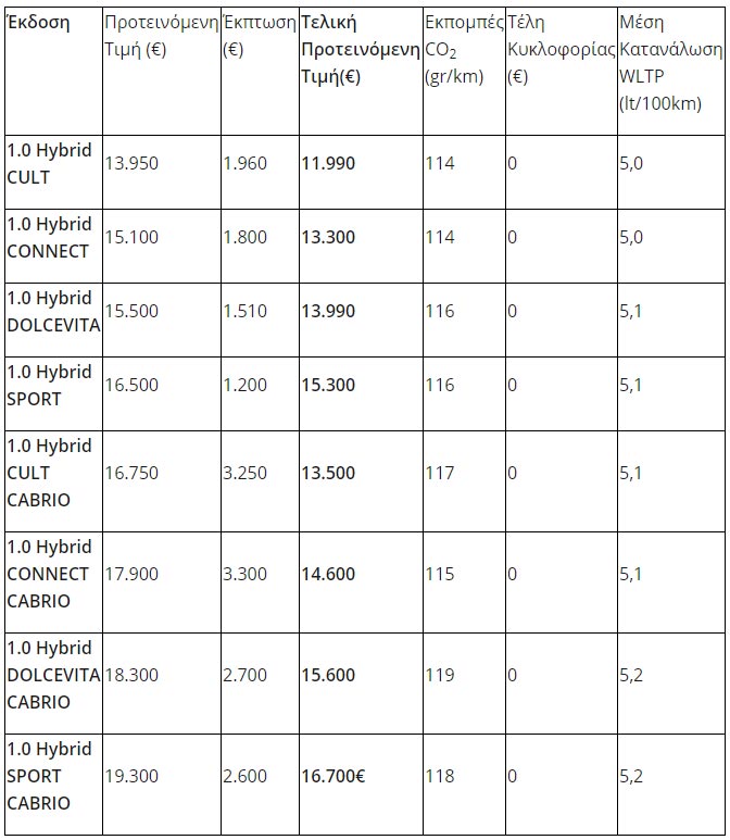 Ακολουθεί ο προτεινόμενος τιμοκατάλογος λιανικής για τις νέα σειρά Fiat 500: