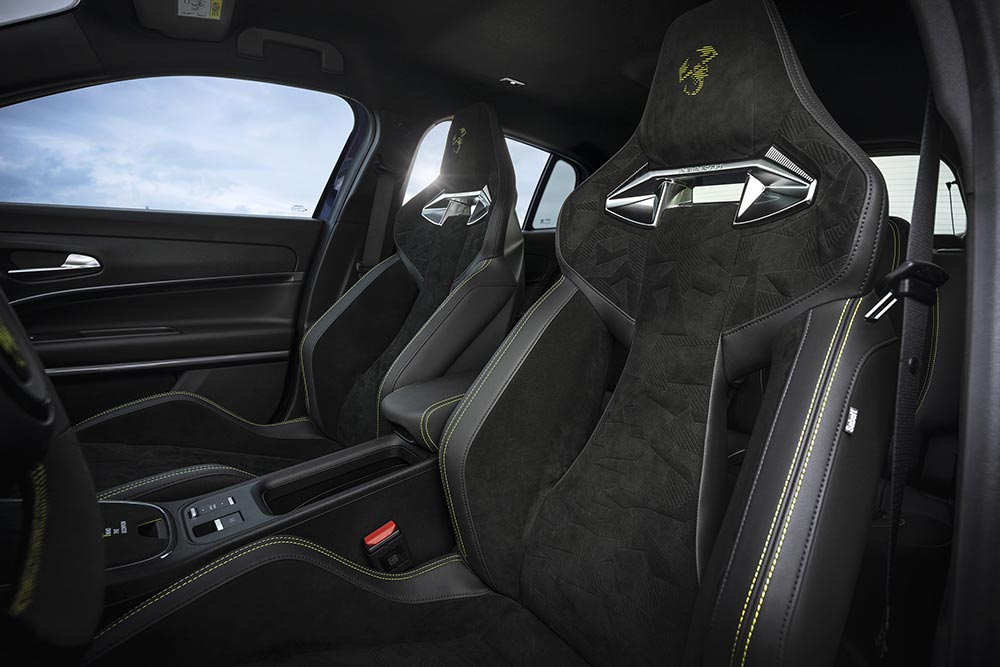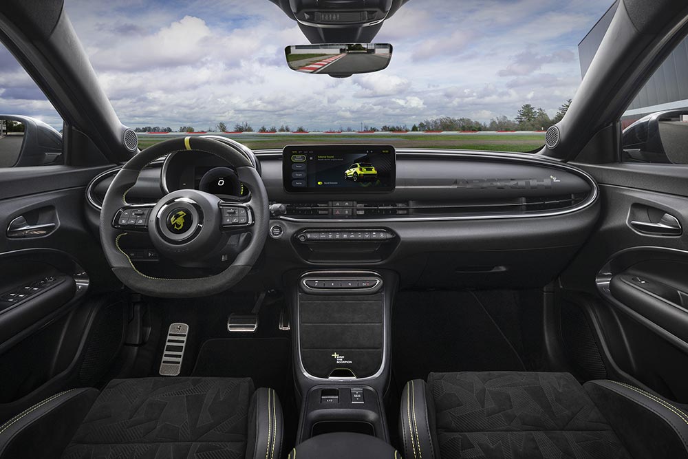 Η σπορ εμφάνιση του νέου Abarth 600e συνεχίζεται και στο εσωτερικό. Οι πολύχρωμες λεπτομέρειες, όπως οι ραφές ή το λογότυπο του σκορπιού στο δέρμα και το τιμόνι με επένδυση Alcantara προσθέτουν έξτρα δυναμισμό. Τα αλουμινένια πεντάλ και το υποπόδιο στην πλευρά του οδηγού ενισχύουν τον πιο έντονο σπορ χαρακτήρα στο Scorpionissima, όπως και τα τύπου μπάκετ καθίσματα της Sabelt.