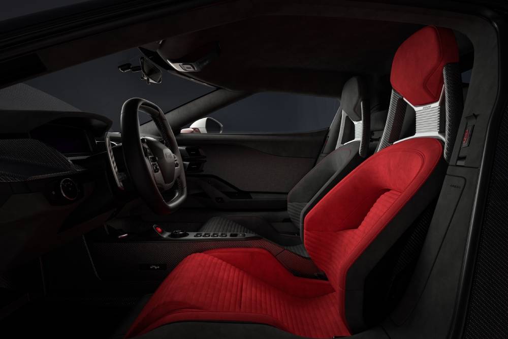 Η καμπίνα του GT LM «πνίγεται» στην alcantara και τα ανθρακονήματα, με το μπάκετ του οδηγού να ντύνεται -σωστά μαντέψατε- σε μπλε ή κόκκινες επενδύσεις. Η εμμονή με τα δυο συγκεκριμένα χρώματα στο LM δεν είναι τυχαία, καθώς εμπνέονται από εκείνα του αγωνιστικού που κέρδισε το φημισμένο αγώνα αντοχής προ 6ετίας. Είναι χαρακτηριστικό πως ακόμα και το start button χρωματίζεται σε μπλε ή κόκκινο, αναλόγως προτίμησης του αγοραστή.