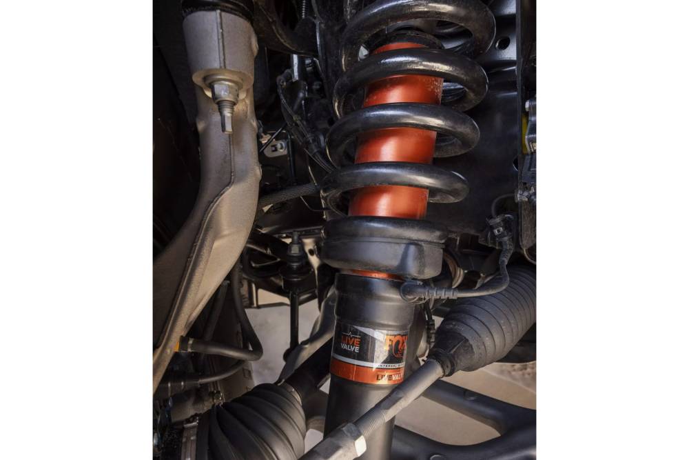 Με τα λάστιχα των 37 ιντσών, που ειρήσθω εν παρόδω είναι τα μεγαλύτερα σε αυτοκίνητο παραγωγής, η διαδρομή της ανάρτησης μπροστά φτάνει τα 355 χλστ. και πίσω τα 380 χλστ., την ώρα που η απόσταση από το έδαφος ξεπερνά τα 310 χλστ. Ακριβή εκτός δρόμου χαρακτηριστικά δεν αποκαλύπτει η Ford με αυτά, αλλά δεδομένα μιλάμε για πάνω από 31 μοίρες γωνία προσέγγισης, 23,5 μοίρες αποχώρησης και 22,7 μοίρες ράμπας που έχει το Raptor με τα στάνταρ ελαστικά των 35 ιντσών. Προαιρετικά και τα νέα ηλεκτρονικά ελεγχόμενα αμορτισέρ Fox Duel Live Valve, που προσθέτουν μια έξτρα βαλβίδα ελέγχου (εξ ου το Duel) και διαθέτουν αναθεωρημένο λογισμικό συγκριτικά με τα στάνταρ Fox Live Valve.