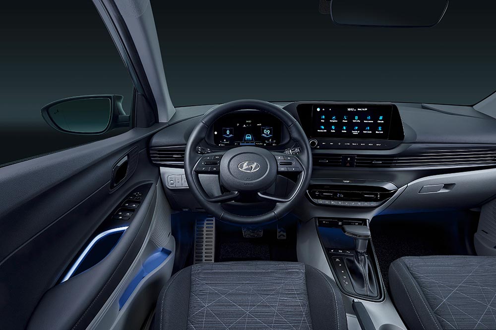 Συγκεκριμένα, το νέο i20. Οι ομοιότητες στο εσωτερικό μεταξύ τους δεν κρύβονται, με το Bayon να μιμείται το i20 στη διαμόρφωση των αεραγωγών του κλιματισμού και το συνδυασμό οθονών. Όλες οι εκδόσεις διαθέτουν ψηφιακό καντράν 10,25 ιντσών, με την οθόνη αφής του συστήματος πολυμέσων να είναι 8 ιντσών στη βασική και 10,25 στις πλούσιες. Οι Κορεάτες υπόσχονται μεγάλη ευρυχωρία, ανακοινώνοντας 1.072 χλστ. χώρου για τα πόδια των εμπρός επιβατών και 882 χλστ. για αυτά των πίσω. Το πορτμπαγκάζ δε, ξεκινά από τα 411 λίτρα και φτάνει μέχρι τα 1.205 λίτρα κατόπιν αναδίπλωσης των πίσω καθισμάτων.