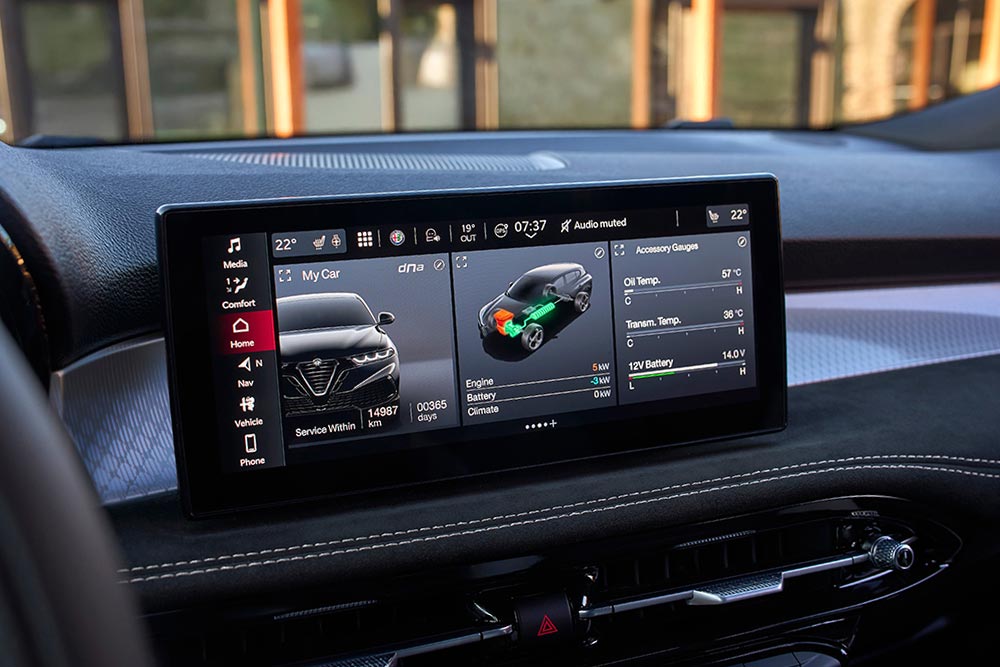 Ο εξοπλισμός της νέας Tonale είναι πληρέστατος και περιλαμβάνει -μεταξύ άλλων- ψηφιακό πίνακα οργάνων 12,3 ιντσών, infotainment Alfa Connect με οθόνη αφής 10,25 ιντσών και διαμορφώσιμο interface η Tonale έχει πολύ εύκολο χειρισμό, ακολουθώντας τη λογική ενός smartphone. Η συνδεσιμότητα περιλαμβάνει ασύρματη επικοινωνία με Apple CarPlay και Android Auto, καθώς και τις ψηφιακές υπηρεσίες Alfa Connect. Ασφαλώς υπάρχει και συμβατότητα με ενημερώσεις Over The Air, για συνεχή ευθυγράμμιση του λογισμικού με τις τελευταίες εξελίξεις.