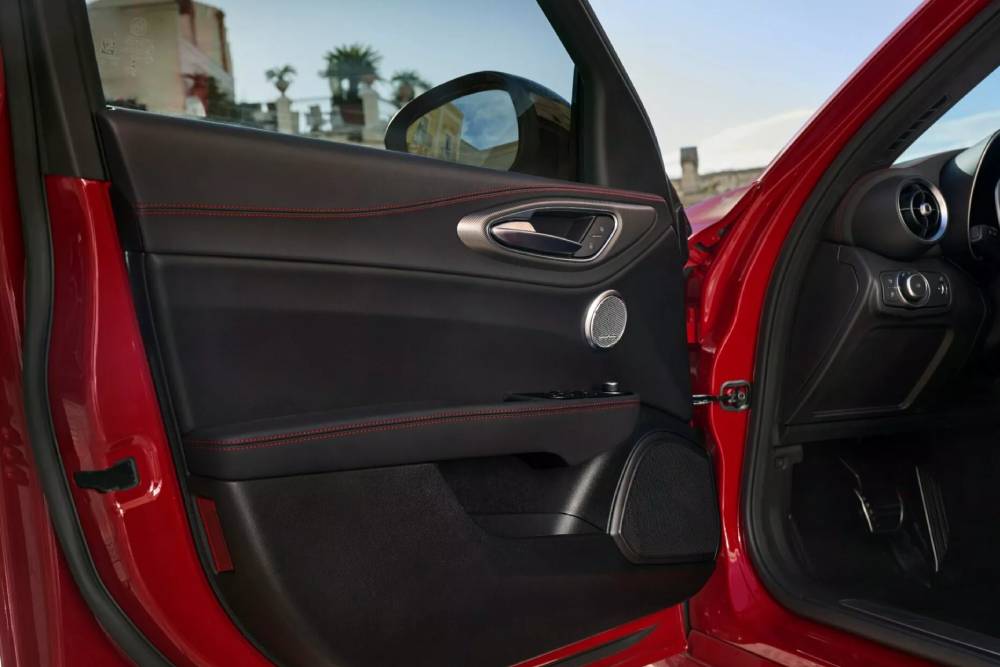 Στο εσωτερικό συναντάμε μαύρες δερμάτινες επενδύσεις για τα καθίσματα με κόκκινες λεπτομέρειες, συν το ανάλογο κέντημα στα προσκέφαλα. Η κόκκινη ραφή επεκτείνεται στο ταμπλό, την κεντρική κονσόλα και το εσωτερικό των θυρών, το ηχοσύστημα είναι της Harman Kardon με 14 ηχεία, ενώ αποκλειστικά για την Tonale Tributo Italiano υπάρχει εφέ ανθρακονημάτων στο φωτιζόμενο ένθετο του ταμπλό.