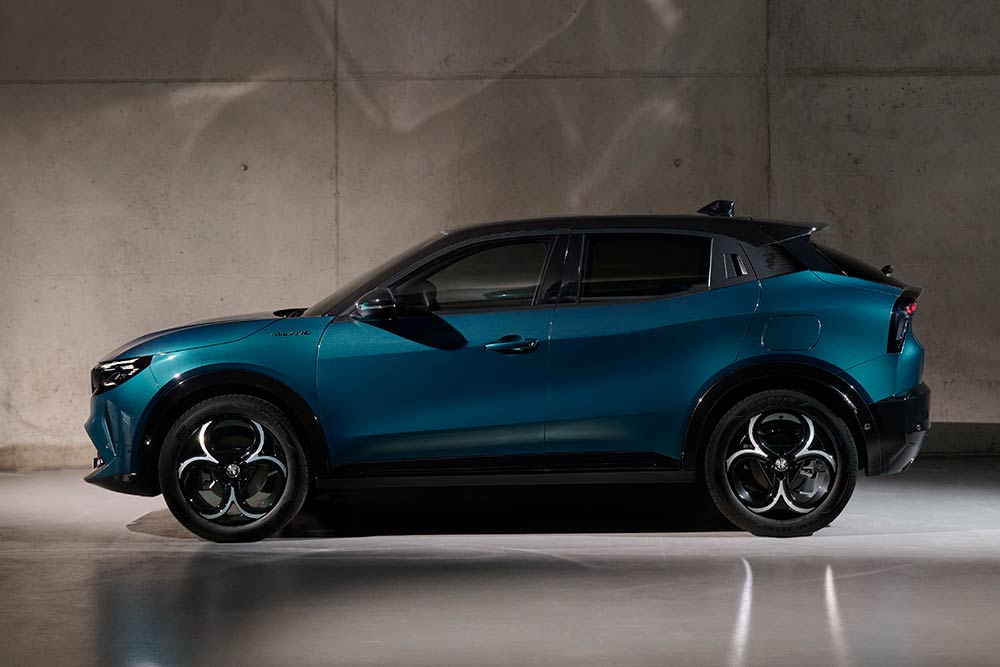 Το αμάξωμά της Milano έχει τις πιο κόμπακτ διαστάσεις από όλες τις σύγχρονες Alfa Romeo, όπως μήκος 4,17 μ., πλάτος 1,78 μ. και ύψος 1,5 μ. Πρωταγωνιστικό ρόλο σε αυτή την υπογραφή παίζει το εμπρός μέρος, με το νέο σχέδιο στην παραδοσιακή τριγωνική μάσκα, όπου αντί για γρίλιες απεικονίζεται το έμβλημα της μάρκας. Αυτό πλαισιώνεται από τους «3+3» ενεργούς Full LED Matrix προβολείς, ενώ στο κάτω μέρος κυριαρχεί η μεγάλη εισαγωγή αέρα στον προφυλακτήρα.