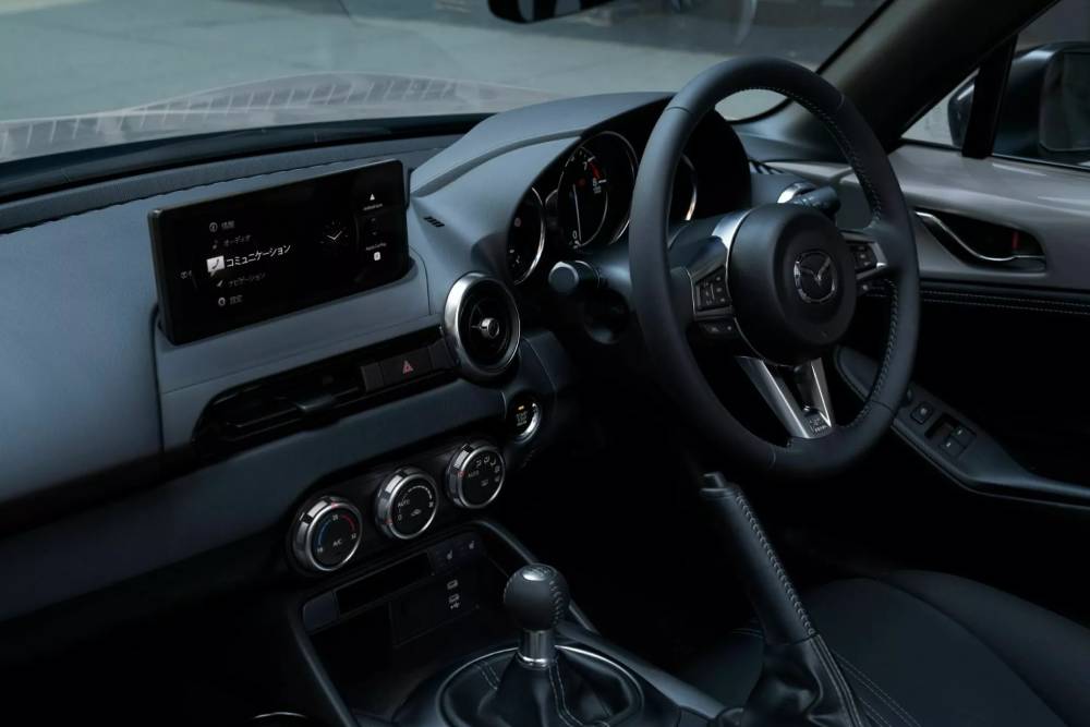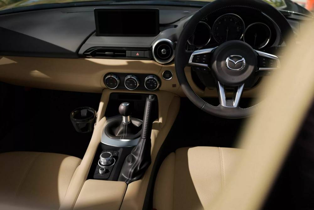 Για την καμπίνα έχουμε μεγαλύτερη οθόνη αφής 8,8 ιντσών, αυξημένες λειτουργίες συνδεσιμότητας και μπεζ Nappa δερμάτινα καθίσματα, με τα τελευταία να αποτελούν προνόμιο της ειδικής έκδοσης Mazda Roadster S Leather Package V Selection.