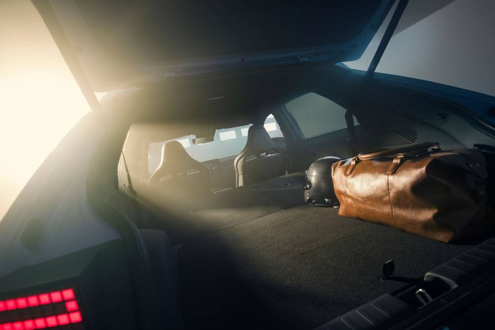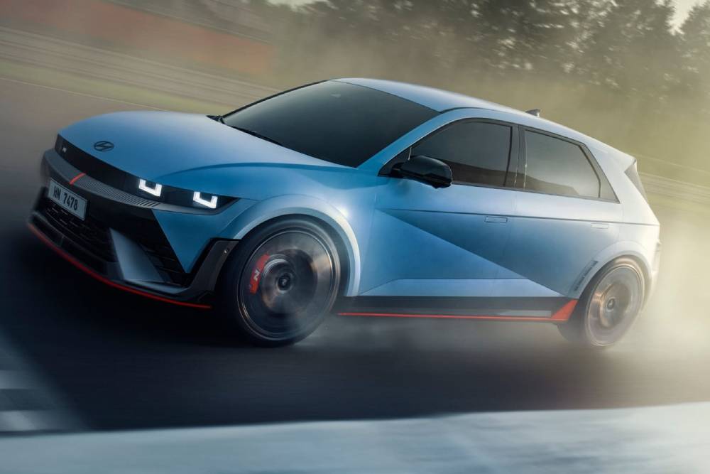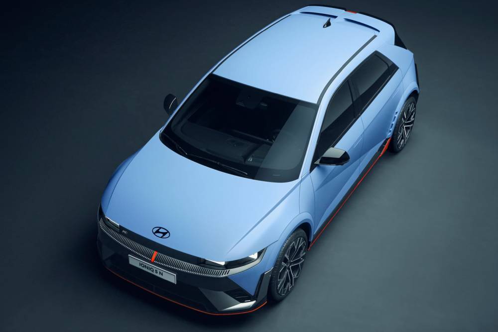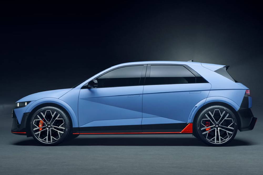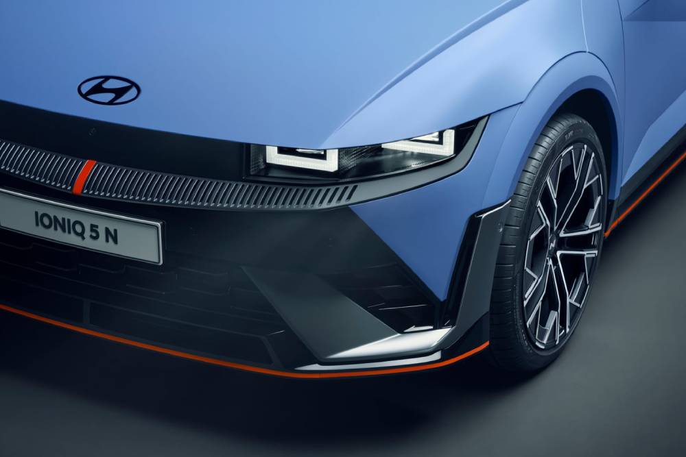 Πριν μπούμε στο πολύ «ψητό», πολλές ματιές στο παρουσιαστικό του κορυφαίου N. To Performance Blue δεν θα μπορούσε να λείπει από το φουσκωμένο αμάξωμα, ούτε οι κόκκινες λεπτομέρειες στα gloss black αεροδυναμικά βοηθήματα (splitter μπροστά, ποδιές στο πλάι, διαχύτης πίσω). Ο εμπρός προφυλακτήρας φιλοξενεί και μια μεμβράνη που μιμείται το ανθρακονημάτινο look, μαζί με μια κόκκινη λωρίδα στο κέντρο του. Οι αεραγωγοί στα πίσω φτερά συνιστούν πρωτιά για Hyundai N, όπως και οι ζάντες διαμέτρου 21 ιντσών (σε λάστιχα 275/35). Στο κέντρο του διαχύτη τραβάει τα βλέμματα το κάθετο φως ομίχλης, ενώ στην κορυφή του πίσω μέρος βλέπουμε το τριγωνικό τρίτο «στοπ» ανάμεσα στα δυο σκέλη της αεροτομής.