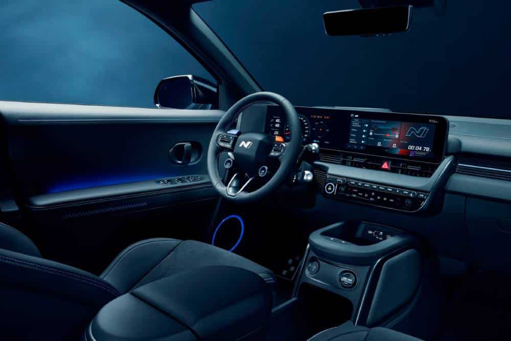 Από το εσωτερικό ξεχωρίζουμε τα σπέσιαλ γραφικά του συστήματος πολυμέσων, που προσφέρει έλεγχο στα συστήματα N Drift Optimizer, N Pedal, N Race και N Torque Distribution, ενώ εντύπωση προκαλεί η τελική ένδειξη του ταχύμετρου που τερματίζει στα 300 χλμ./ώρα. Η καλύτερη «προειδοποίηση» για τον καταιγισμό επιδόσεων και τεχνολογίας, που επιφυλάσσει το Ioniq 5 N στον οδηγό του.