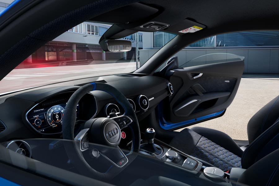 Το εσωτερικό είναι και αυτό εμπνευσμένο από το θρυλικό Audi RS 2 Avant. Διακρίνονται οι μαύρες επενδύσεις από δέρμα με τα μπλε ένθετα από αλκαντάρα, τα σπορ καθίσματα RS και τα ειδικά πατάκια. Επιπλέον τα λογότυπα «25 years» συμπληρώνουν το συνολικό πακέτο.