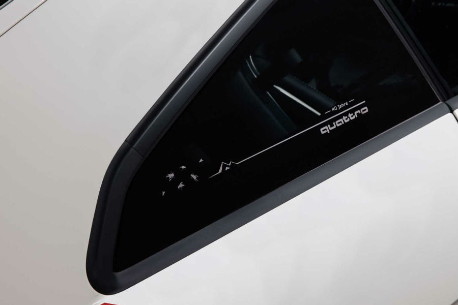 Το μικρό κουπέ είναι βαμμένο σε Alpine White και φέρει αυτοκόλλητα, που αποτίουν φόρο τιμής στο Quattro S1 Pikes Peak του 1987, που με τον Walter Röhrl πίσω από το τιμόνι έσπασε τα χρονόμετρα στη φημισμένη ανάβαση.