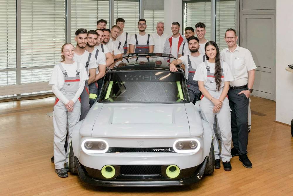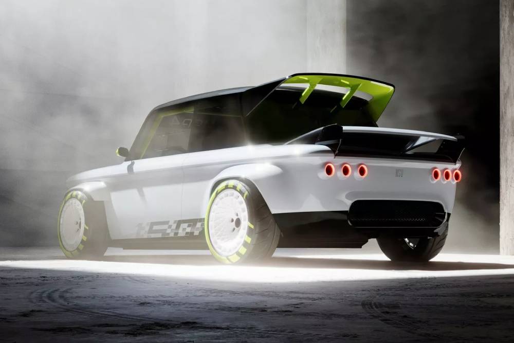 Στο αμάξωμα δεσπόζουν τα φουσκώματα, οι μεγάλες ζάντες και οι δυο μεγάλες αεροτομές πίσω, την ώρα που τα τετράγωνα εμπρός και τα 6 κυκλικά (3 ανά πλευρά) φωτιστικά σώματα εφαρμόζονται στη μοντέρνα, γεμάτη LED, εκδοχή τους. Το πάτωμα προέρχεται από το Audi A1 και όλο το αμάξωμα αποτελείται από συνθετικά υλικά, με πολλά να αποτελούν προϊόν 3D εκτύπωσης. H κίνηση αφήνεται σε έναν ηλεκτροκινητήρα 240 ίππων τοποθετημένο πίσω και τροφοδοτώντας τους αντίστοιχους τροχούς, ενώ η ενέργεια αντλείται από μια μπαταρία 17,3 kWh. Εικόνα από το εσωτερικό δεν έχουμε, ωστόσο τα λαχανί μπάκετ της Recaro φαίνονται πεντακάθαρα ακόμα και από τις εξωτερικές λήψεις.