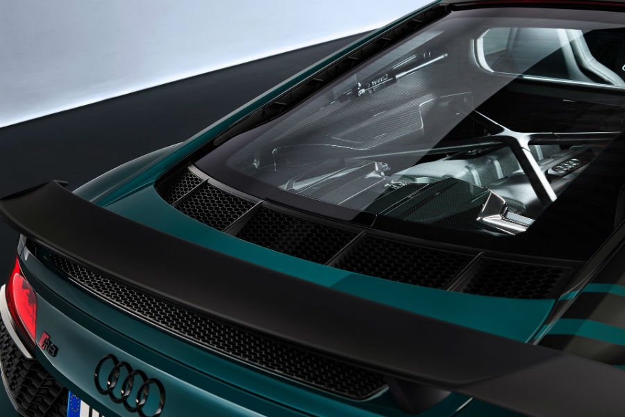 Στο κέντρο του R8 δεσπόζει ο ατμοσφαιρικός V10 FSI των 5.2 λίτρων, με απαράλλαχτη την απόδοση των 620 ίππων στις 8.000 σ.α.λ. και 580 Nm στις 5.600 σ.α.λ. Η ισχύς μεταφέρεται σε όλους τους τροχούς, μέσω του 7τάχυτου αυτόματου S tronic και του συστήματος quattro, επιτυγχάνοντας 0-100 χλμ./ώρα σε 3,1 δλ. και τελική 331 χλμ./ώρα.