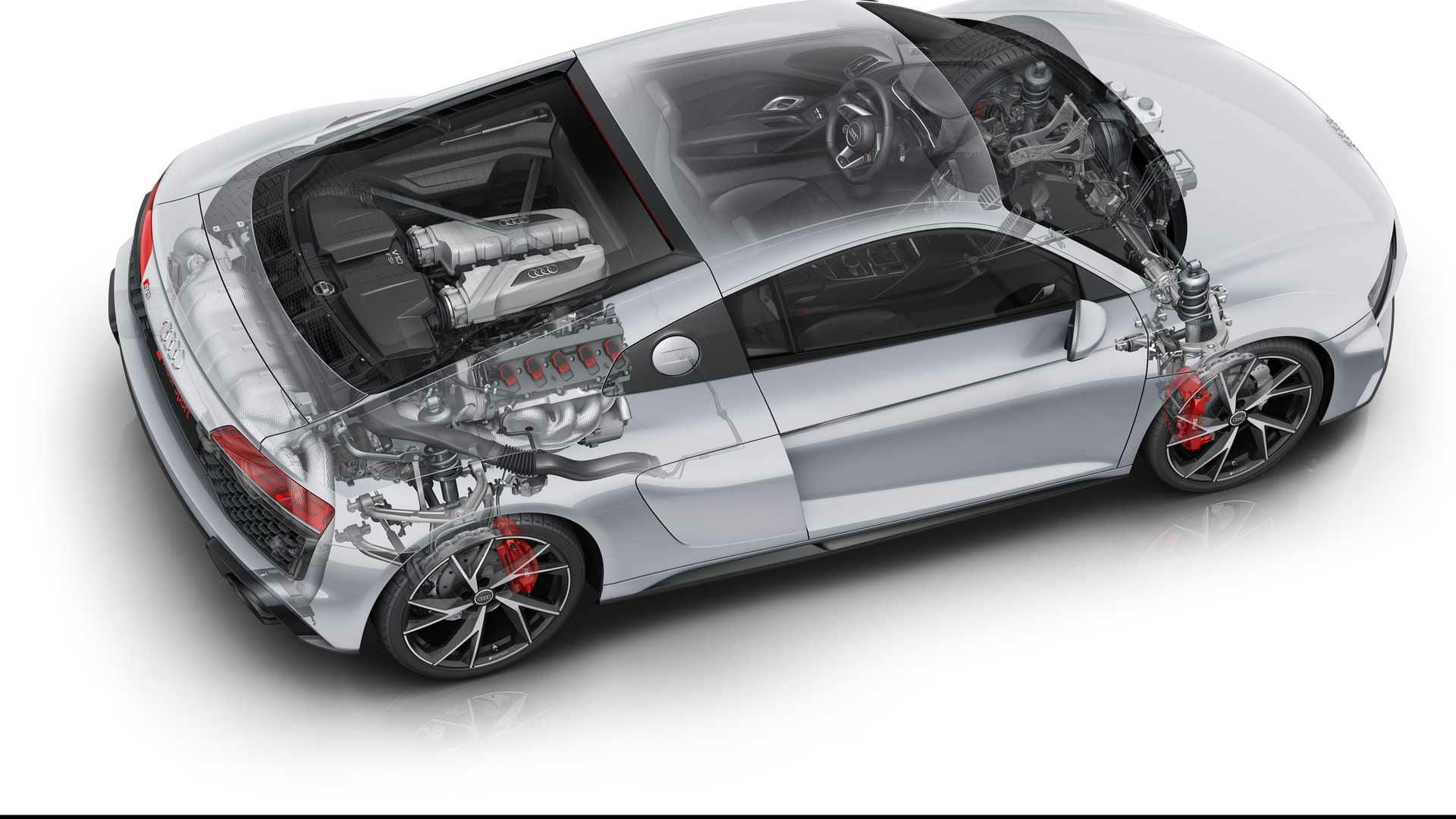Στα μηχανικά μέρη, υπάρχουν σαφώς περισσότερες διαφοροποιήσεις. Εκτός από την προφανή στη μετάδοση, ο ατμοσφαιρικός V10 FSI των 5.2 λίτρων έχει κατέβει στα 540 άλογα και 540 Nm ροπής, χάνοντας 30 ίππους και 20 Nm συγκριτικά με τη βασική έκδοση του R8 quattro. Βέβαια δεν υπάρχει περίπτωση να το χαρακτηρίσει κάποιος αργό, καθώς τα 3,7 δλ. για τα πρώτα 100 χλμ./ώρα και η τελική των 320 χλμ./ώρα (318 χλμ./ώρα το Spyder) είναι εξαιρετικές επιδόσεις.