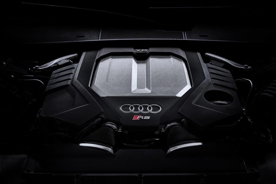 Την κίνηση του θεριού αναλαμβάνει ο V8 4.0 TFSI με απόδοση 600 ίππων και 800 Nm ροπής μεταξύ 2.050 και 4.500 σ.α.λ., ο οποίος προσφέρει επιτάχυνση από 0-100 χλμ./ώρα σε μόλις 3,6 δλ. και από 0-200 χλμ./ώρα σε 12 δλ., ενώ η τελική ταχύτητα σταματά ηλεκτρονικά στα 250 χλμ./ώρα. Το μηχανικό αυτό σύνολο συνδυάζεται με ένα ήπιο υβριδικό σύστημα (MHEV) 48 volt. Έως 16 kW ενέργειας μπορούν να ανακτηθούν κατά την επιβράδυνση και να αποθηκευτούν στην ξεχωριστή μπαταρία ιόντων λιθίου.